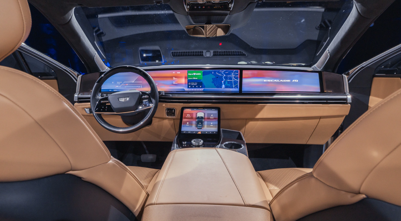 The interior of the 2025 Escalade will undergo a major overhaul, especially regarding the dashboard and screen layout. The current double-layer OLED screen setup will be replaced by a single-panel screen that covers most of the dashboard. The screen will display speed, navigation, entertainment, and vehicle settings. Cadillac may also add a passenger screen showing different content from the driver’s screen.
