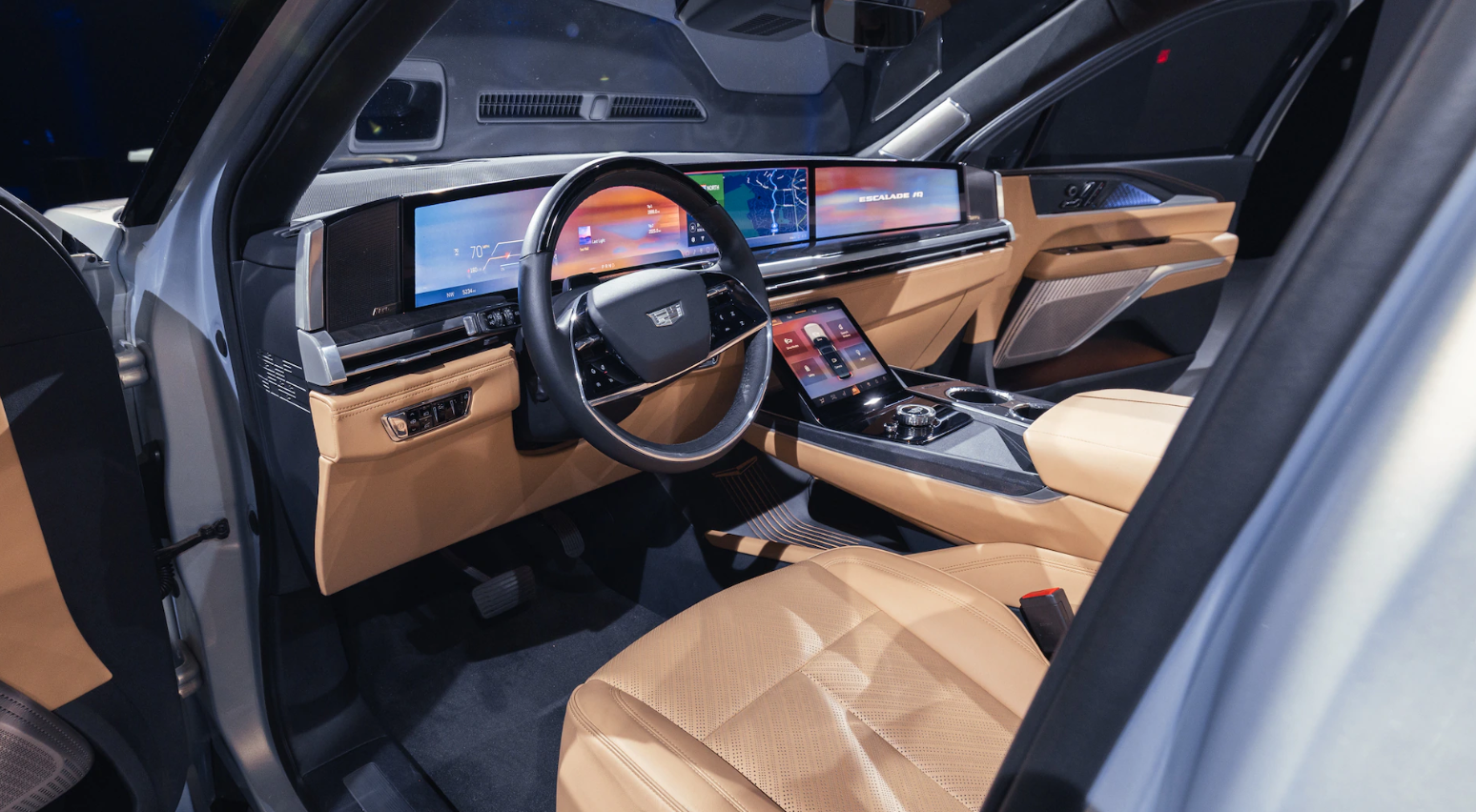The interior of the 2025 Cadillac Escalade redesign will see a more significant overhaul, especially in terms of technology and layout. The current double-layer OLED screen setup will be replaced by a single-panel screen that covers most of the dashboard, serving as the instrument cluster, infotainment screen, and possibly a front passenger screen. The screen will be powered by Google, which means no Apple CarPlay support and access to Google Maps, Google Assistant, and other Google services. The center stack will also have another touchscreen that controls the climate settings and other vehicle functions.