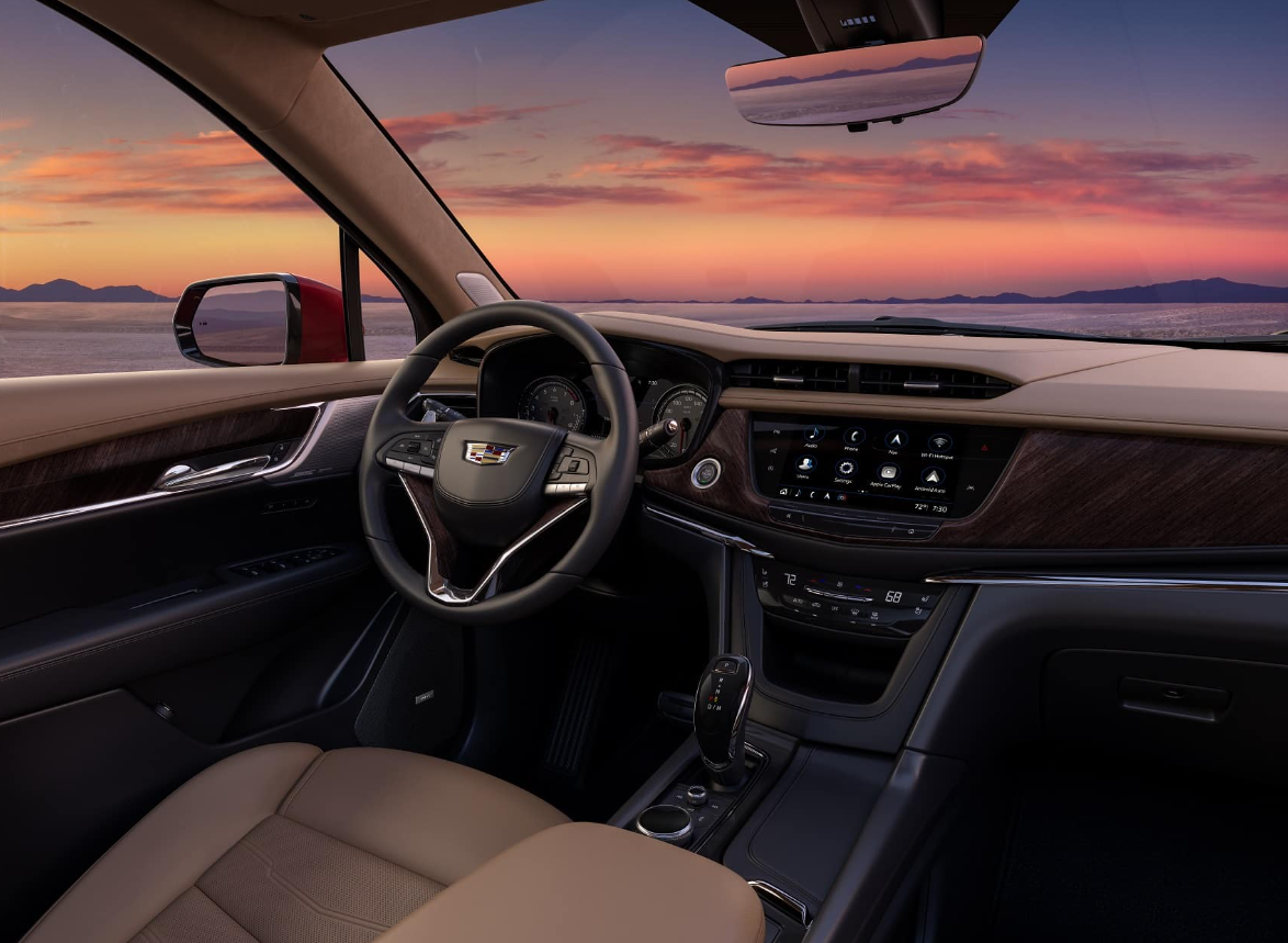 The 2025 Cadillac XT6’s interior will be just as amazing. It will have three rows of seats that can fit up to seven people, and the cabin will be large and luxurious. A big tablet entertainment system in the XT6 will work directly with Apple CarPlay and Android Auto. The dashboard will be sleek and stylish. It will also have wireless charging and a Wi-Fi hotspot. The XT6 will also have a head-up display, a digital instrument panel, and a rotary controller, making it easy to get to different features. The inside of the XT6 will be made of high-quality materials, like leather seats, wood trim, and metal highlights. The XT6 will also have a lot of room for goods behind the third row. You can fold down the second and third rows to make it bigger.